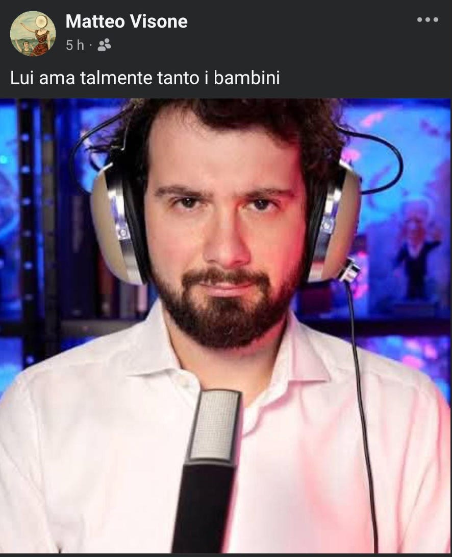 La più comune è quella che mi accusa di essere un pedofilo. Questa sta facendo il giro del web. Nei gruppi Telegram, su X.com, su Threads, c’è la mia faccia associata all’avviso di tenere alla larga i bambini da me.